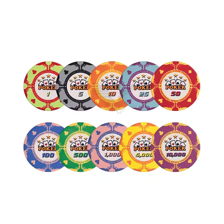 New design 10g ceramic entertainment poker game chip set featuring mixed colors perfect for Texas poker games. Premium ceramic construction for serious gameplay.