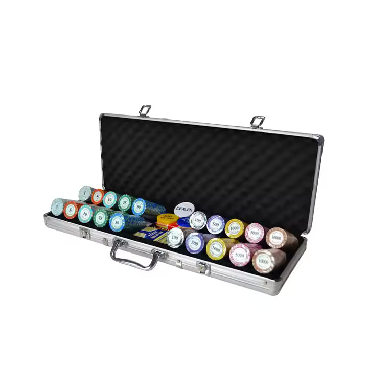 Premium 500-piece Crown design clay poker chip set perfect for serious gambling and tournament play. Features 14g authentic clay chips in mixed colors.