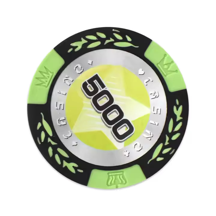 Premium 14g Crown Wheat design clay poker chips featuring intricate detailing and authentic casino weight. Wholesale quality construction for serious players.