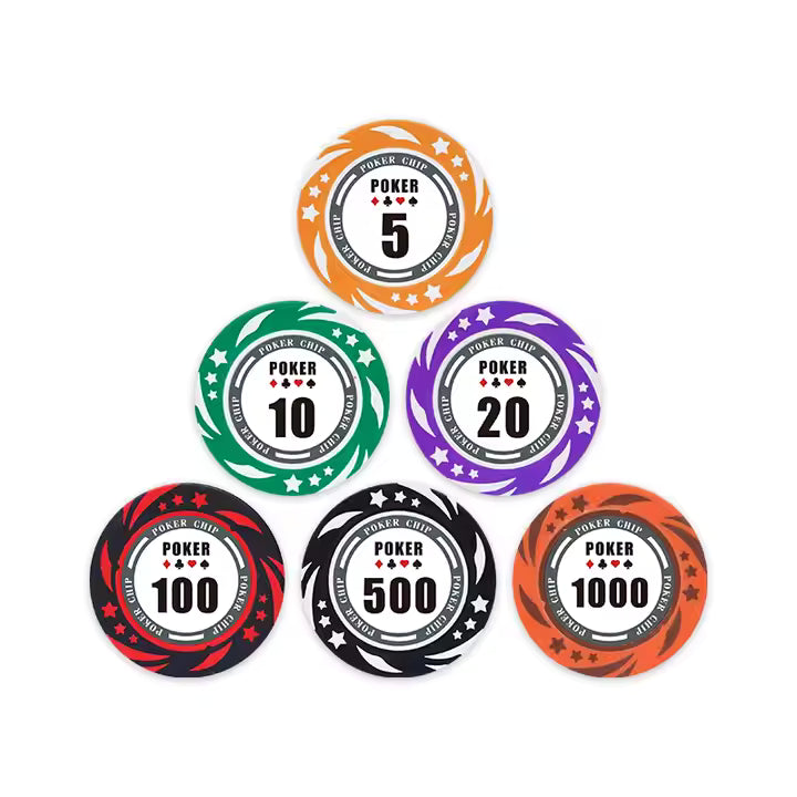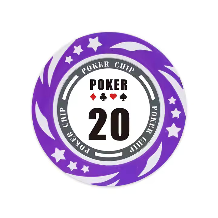 Original factory premium Stars Metal design 14g clay poker chip set featuring new style metallic accents and professional construction.